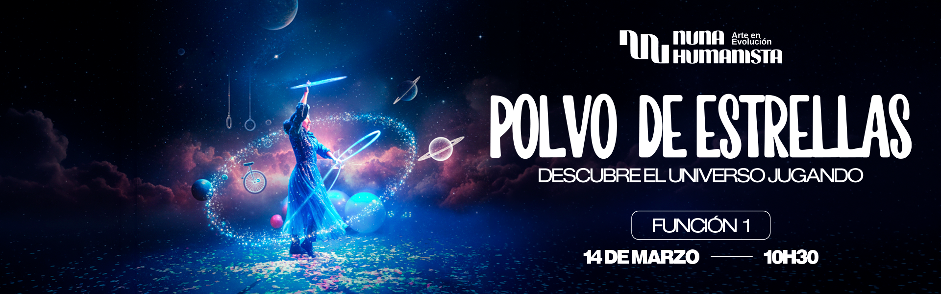 A través de la luz, la música, la danza, la acrobacia y los malabares, viajaremos juntos por el mágico ciclo de vida de una estrella.